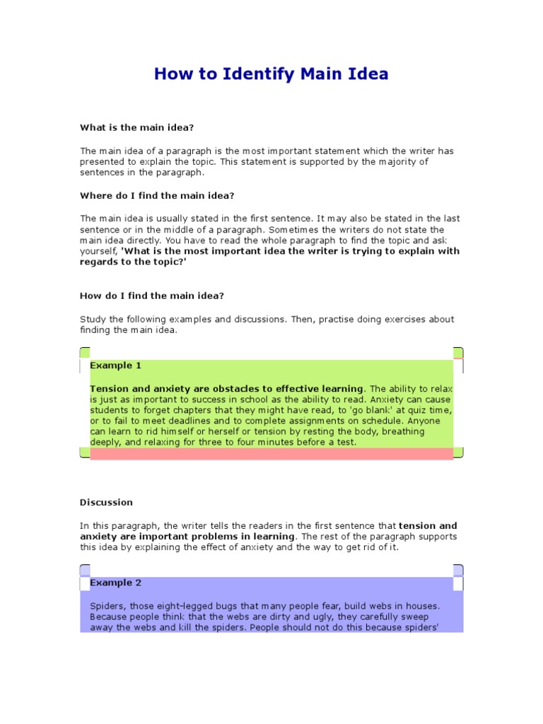 How To Identify Main Idea Paragraph Sea