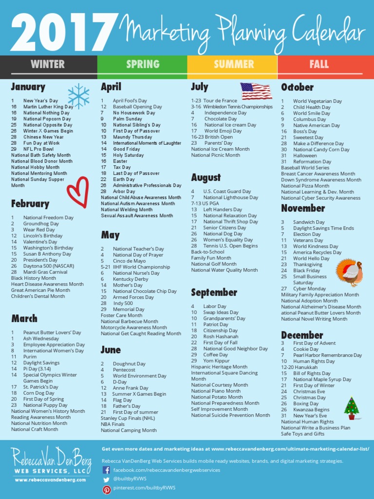 2017 Marketing Planning Calendar Holidays Observances